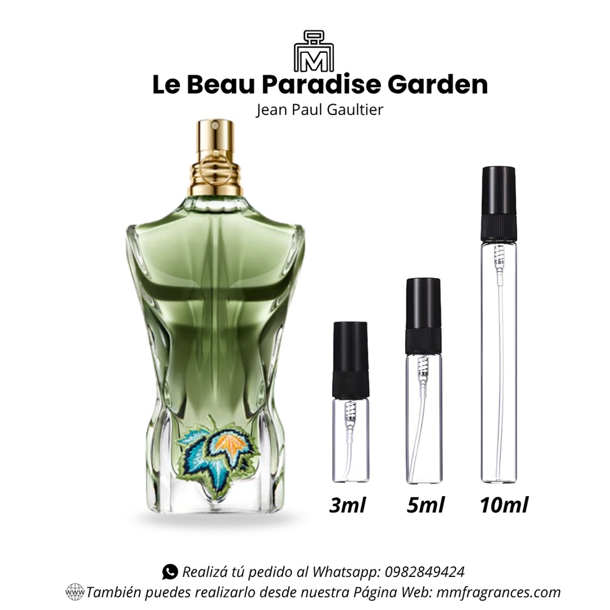 Le Beau Paradise Garden de Jean Paul Gaultier es una fragancia de la familia olfativa para Hombres. Esta fragrancia es nueva. Le Beau Paradise Garden se lanzó en 2024. La Nariz detrás de esta fragrancia es Quentin Bisch. Las Notas de Salida son notas verdes, notas acuosas, menta y jengibre; las Notas de Corazón son coco, higo y sal; las Notas de Fondo son haba tonka y sándalo.
